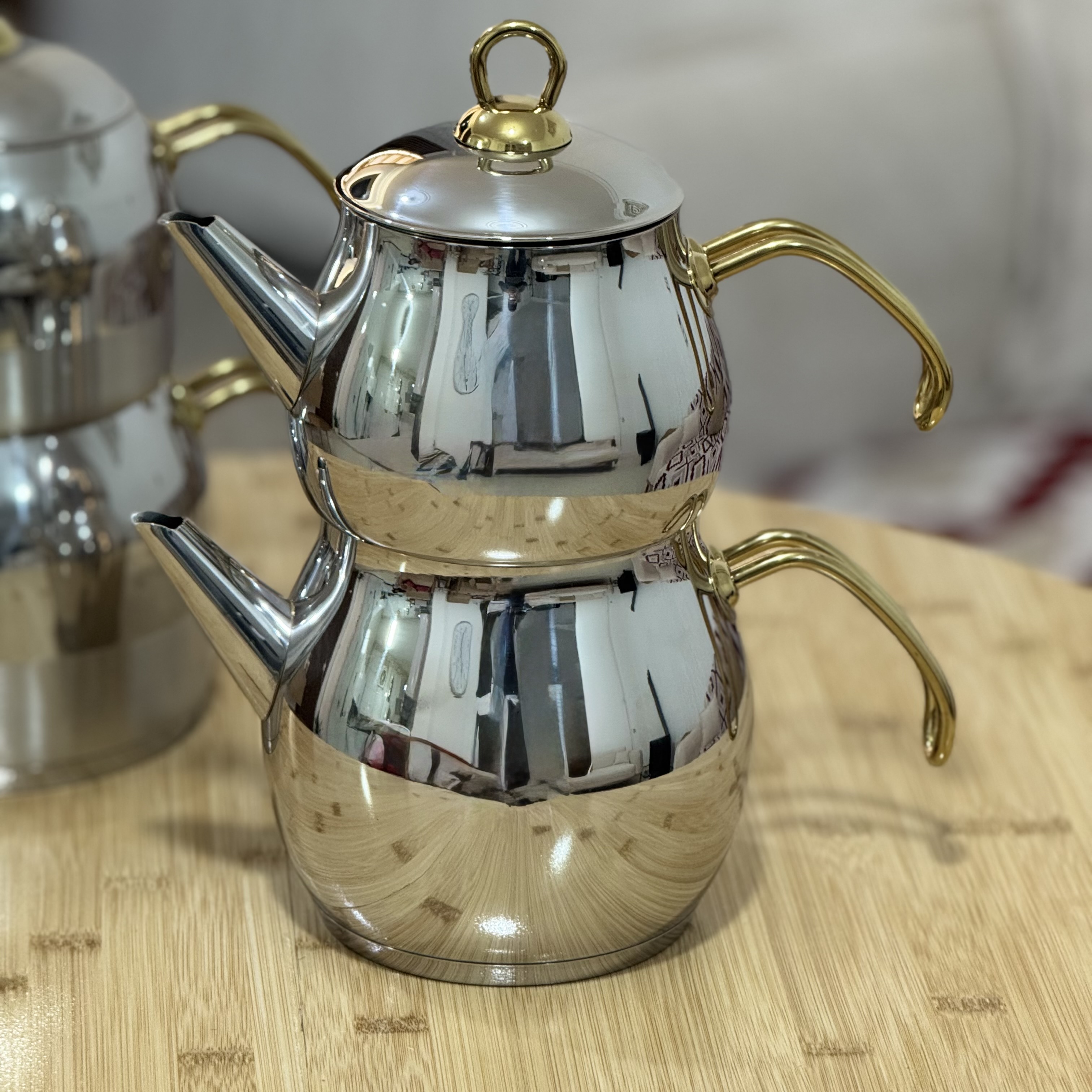کتری وقوری دارای درب جداگانه جنس کاملا استیل ۳۰۴ ضد خش و ضد زنگ رنگ ثابت دوسال گارانتی کفی سه لایه برند محبوب zio ساخت کشور ترکیه کیفیت ساخت عالی با بهترین متریال
